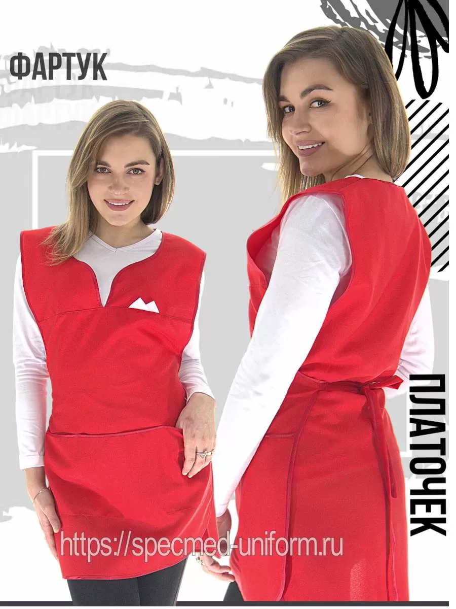 Фартук изготовлен из ткани габардин(100%ПЭ) ,по груди отрезная кокетка с двумя платочками, один большой накладной карман, разделенный на три части. широкие завязки для регулировки размера по линии талии.