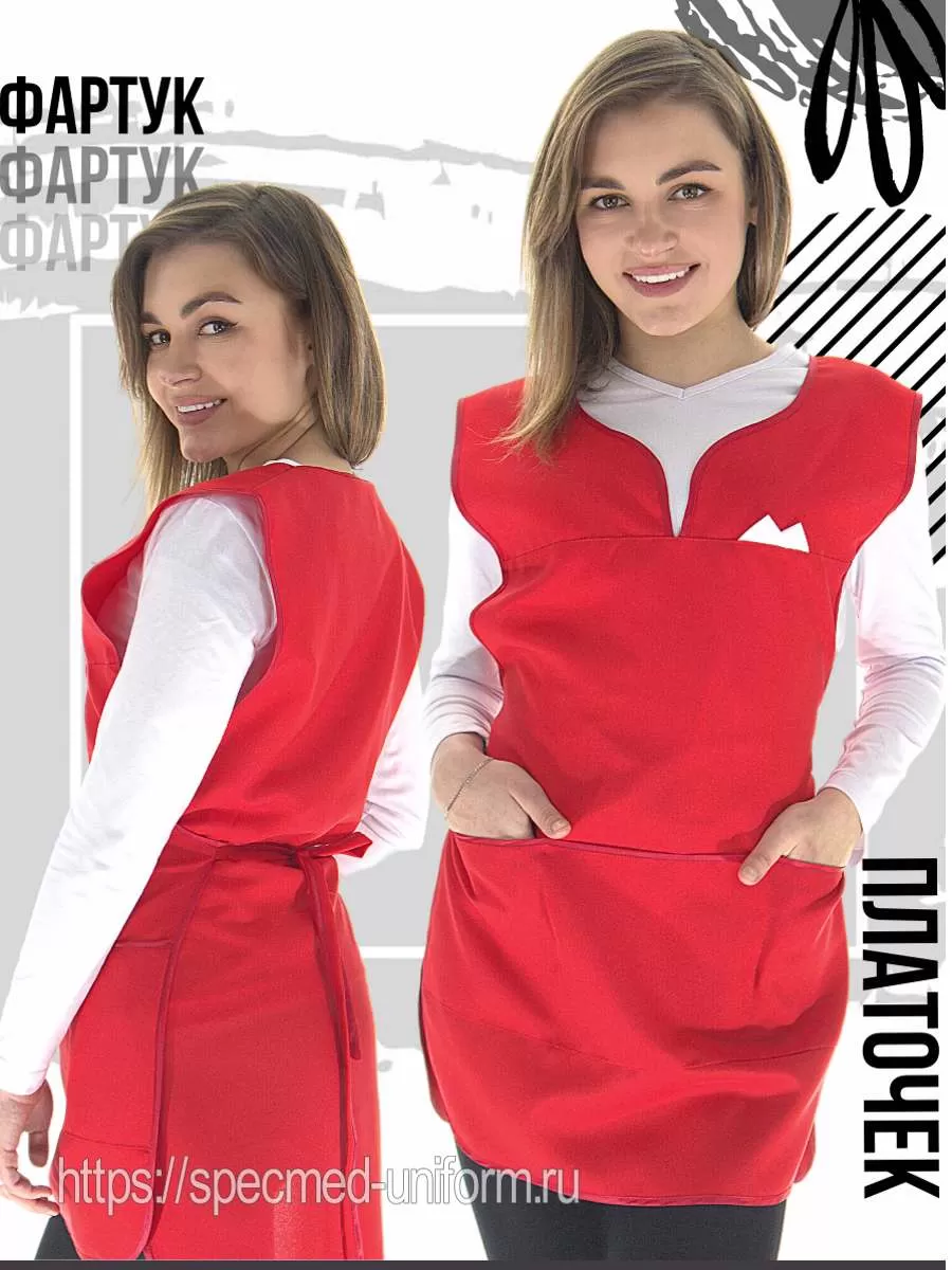 Фартук изготовлен из ткани габардин(100%ПЭ) ,по груди отрезная кокетка с двумя платочками, один большой накладной карман, разделенный на три части. широкие завязки для регулировки размера по линии талии. |