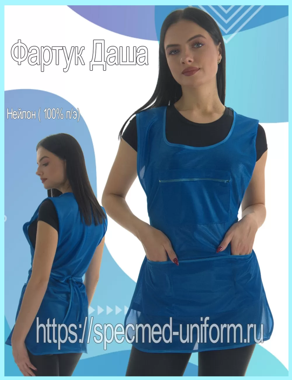Фартук рабочий выполнен из ткани "Нейлон". Для максимального удобства на фартуке есть нагрудный карман на молнии, а так же по низу расположены три вместительных глубоких кармана. В нашем магазине спецодежды представлен большой ассортимент униформы подходящей для продавцов, парикмахеров, работников сферы общественного питания, поваров, клининга а так же повседневного использования.
